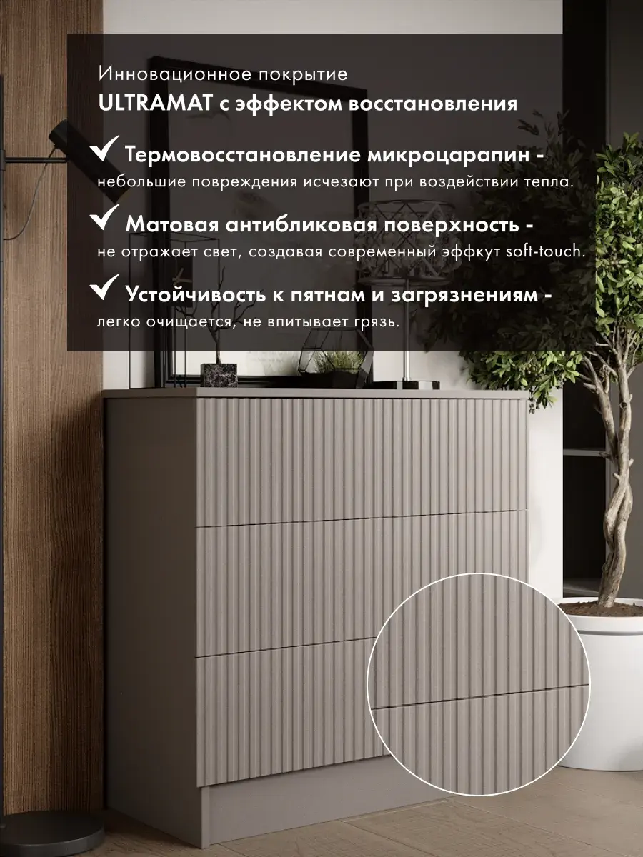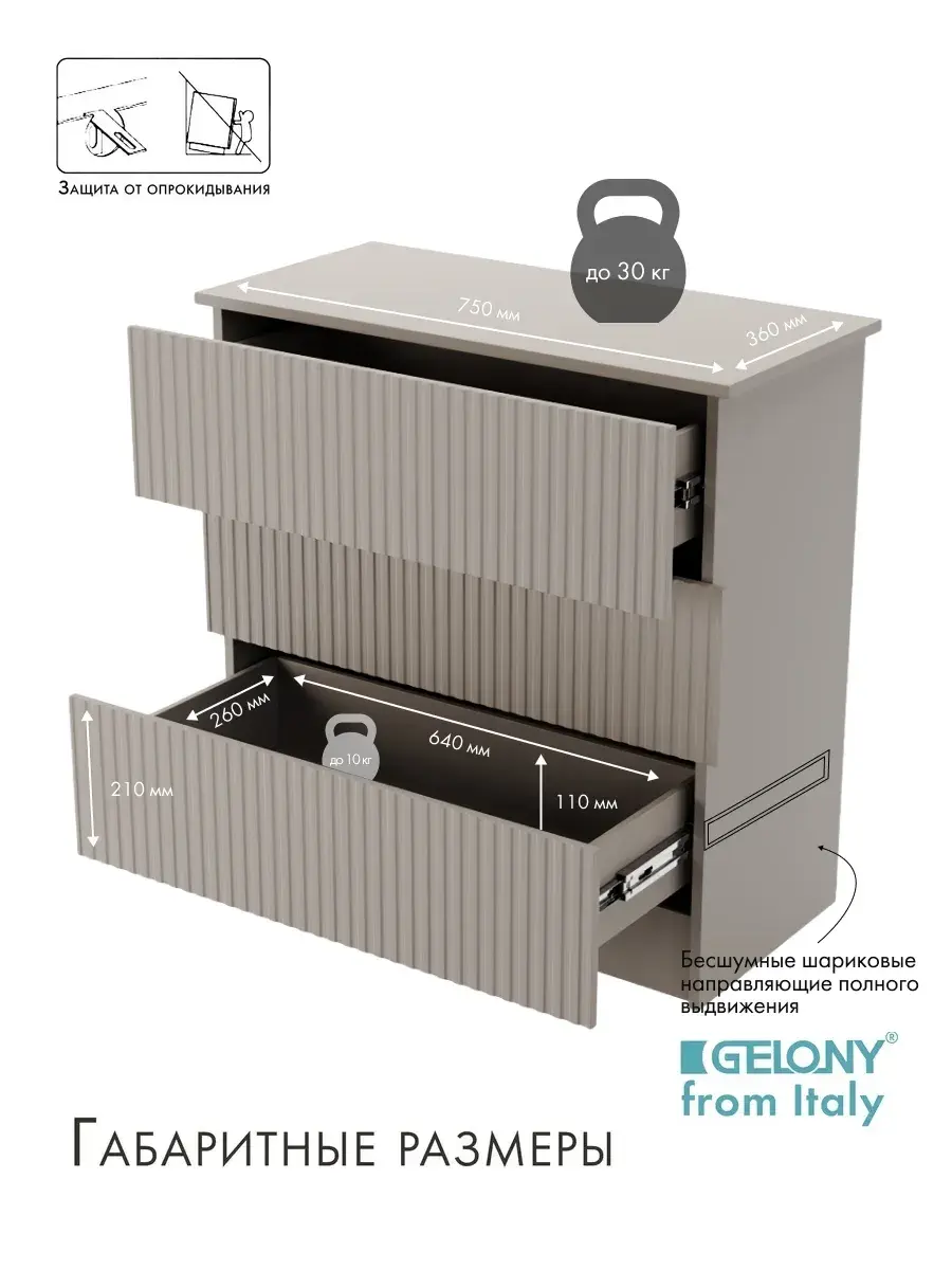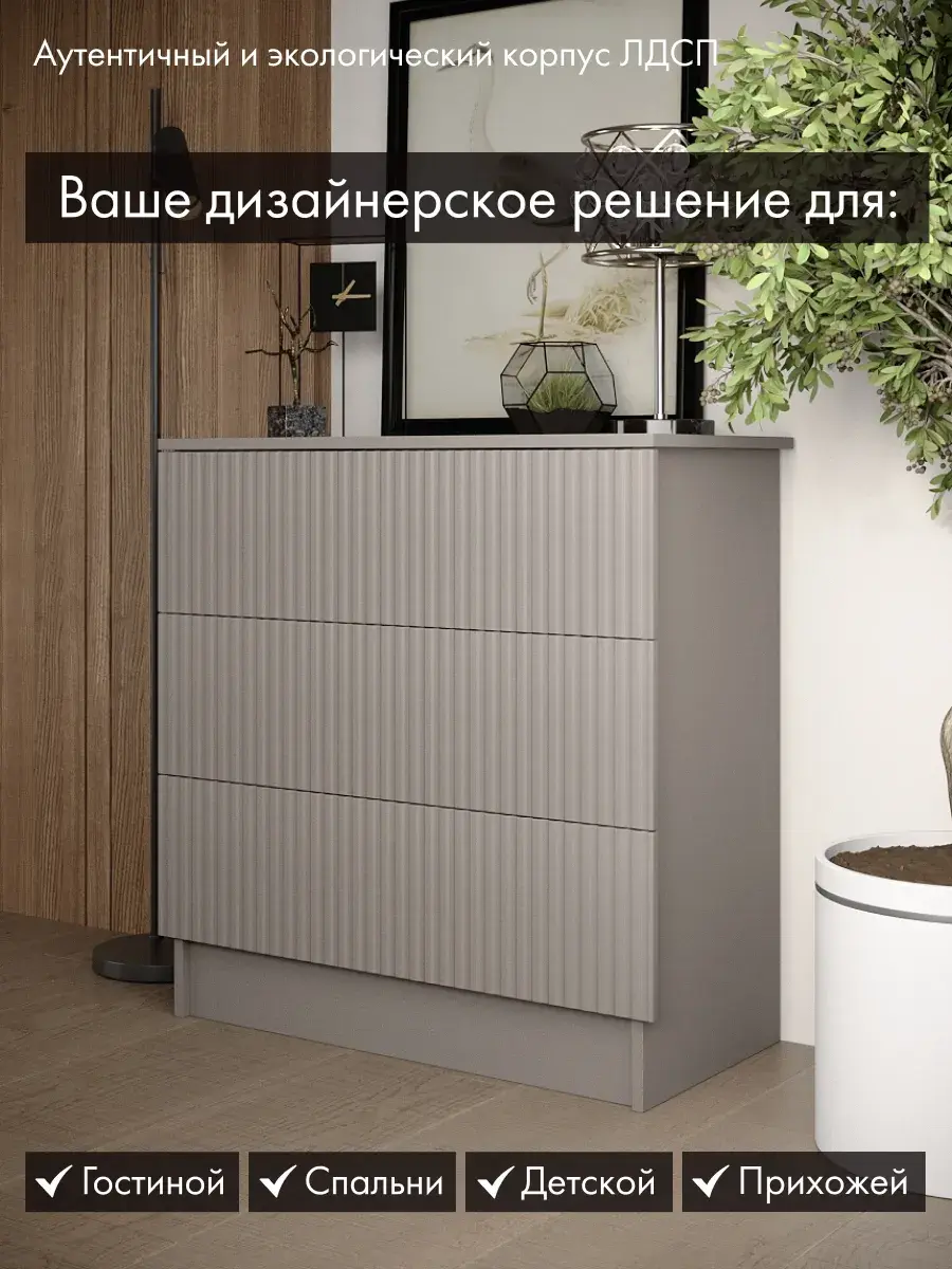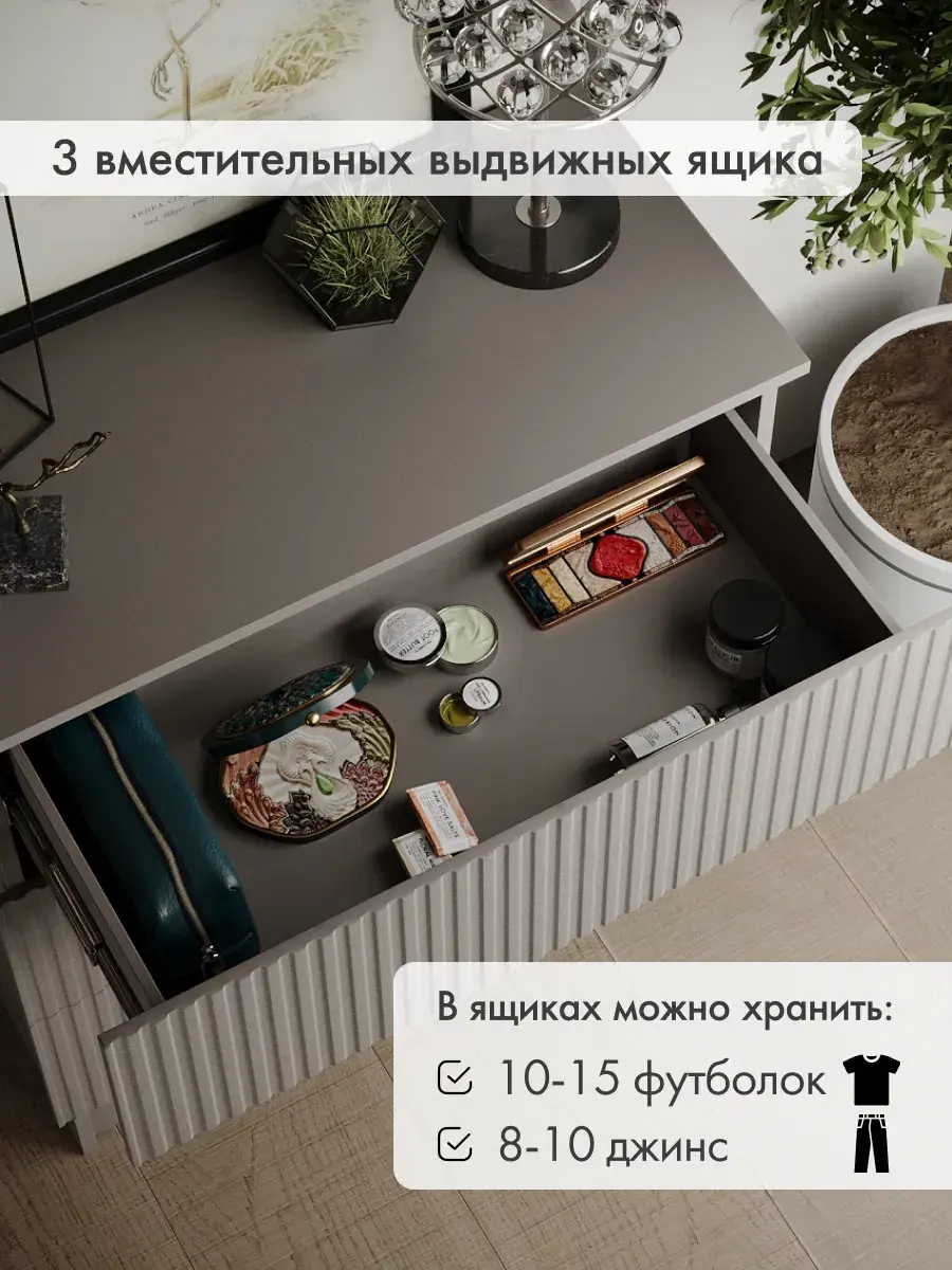 Стильный комод с фрезеровкой и 3 ящиками станет элегантным акцентом в любом интерьере. Камод в стиле лофт изготовлен из качественных материалов с покрытием Soft-touch. Код цвета в системе RAL 9003. Деревянный комод обеспечит надежное хранение ваших вещей. Благодаря компактным размерам, узкий комод можно разместить в прихожую.