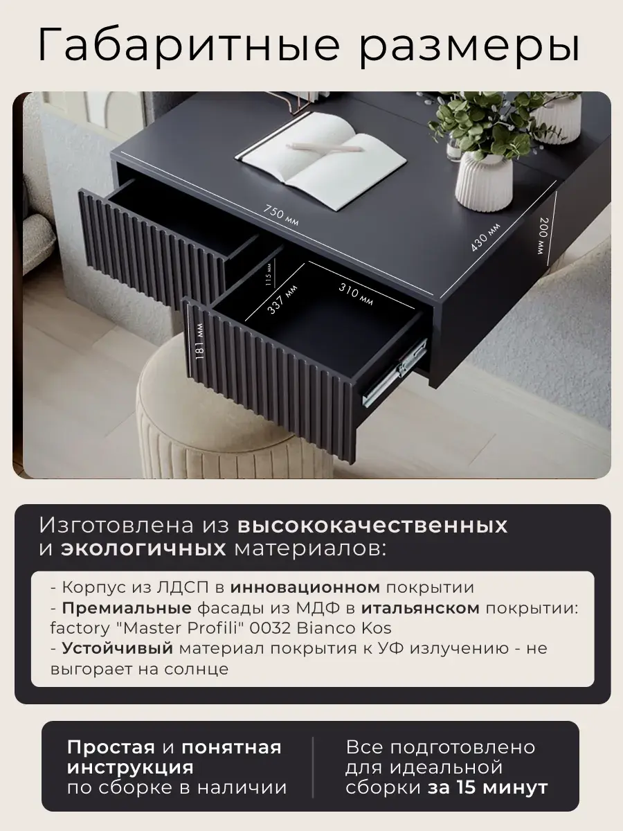 Консольный настенный туалетный столик - создаст удобное пространство для ухода за собой. Косметическая тумбочка сочетает современный дизайн и практичность. Код оттенка цвета RAL 300 30 05. Подвесная консоль оснащена двумя ящиками, что обеспечит хранение косметики и аксессуаров. Трюмо для макияжа украсит спальню, а также тумба подходит в прихожую. Макияжный дамский навесной стол позволит сэкономить место и создать легкий интерьер в комнате. Подвесной косметический столик подойдет для профессионального использования в салоне красоты для бровиста или визажиста.